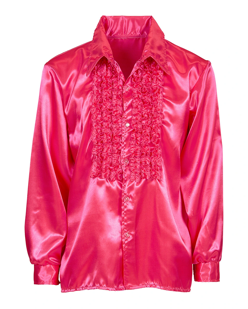 Andere können bunt, du kannst noch bunter. Das 70´s Disco Fashion Rüschenhemd Pink ist der Farbklecks schlechthin. Leuchtendes Pink auf glänzendem Stoff und die feinen Rüschen im Brustbereich machen das Disco Hemd zum lässig grellen 70ies Mode Accessoire für alle Tanzkönige. Weitere coole Accessoires wie die 70er Jahre Perücke Wolle findest du hier im Shop.