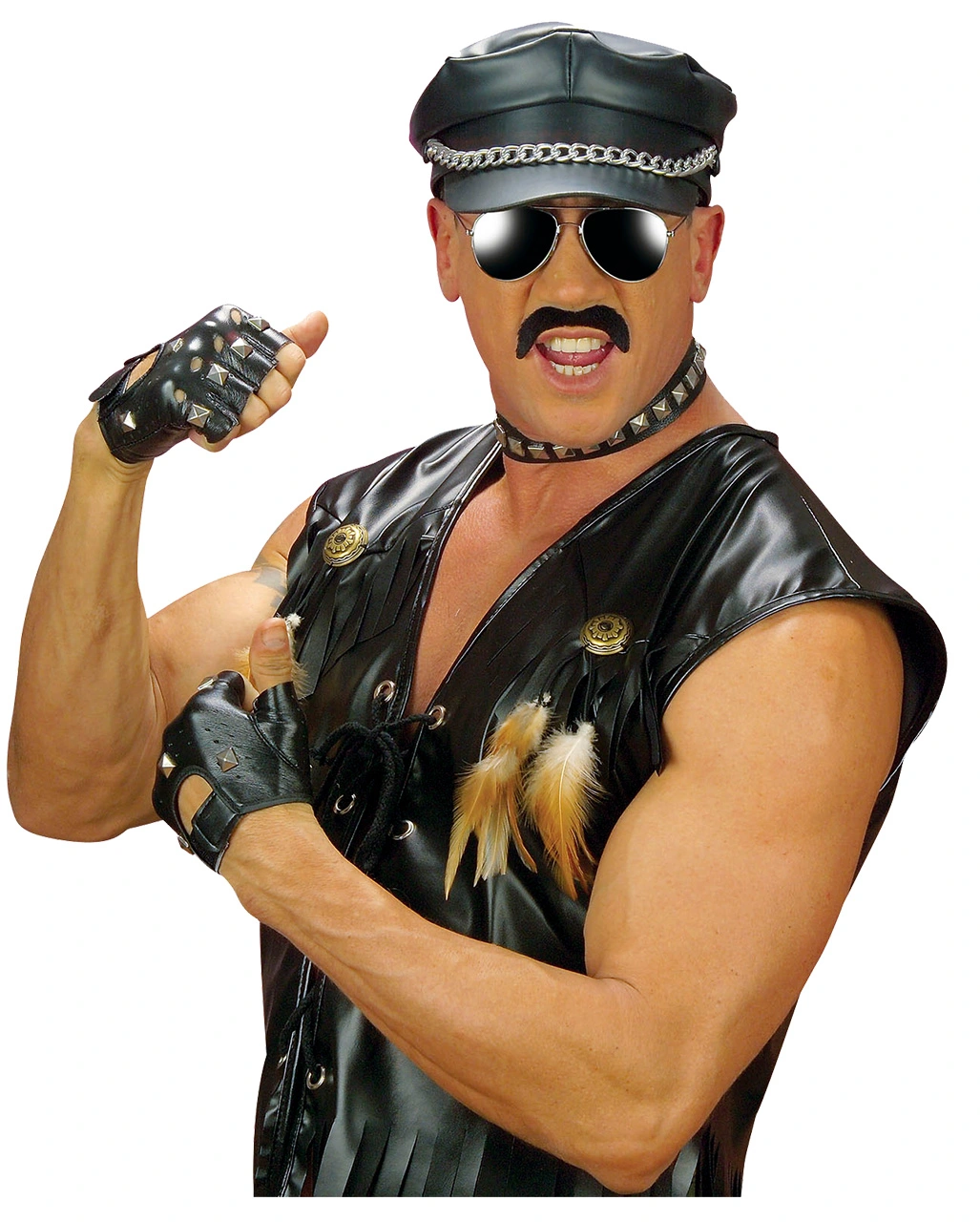 Das Biker & Rocker Nieten Set in Lederoptik sorgt für die richtigen Details deiner Rocker Verkleidung. Lässig und knallhart trittst du an Fasching aus. Überall blinken silberne Nieten auf. Damit beeindruckst du als waschechter Biker genau wie als schriller Punkrocker. Egal, ob Karneval oder 80er Jahre Motto Party, mit dem genialen Kostüm Accessoire Set eines Rockers sorgst du für einen eindrucksvollen Auftritt.