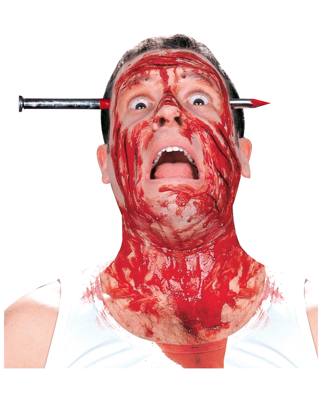 Ein durch den Kopf gerammter Nagel ist ein richtiger Schocker für Halloween und Karneval und ein Klassiker unter den Scherzartikeln. Mit dem coolen Haarreif schockst du Mutti genauso wie die lieben Arbeitskollegen. Mit dem blutigem Nagel im Kopf demonstrierst du dein, offensichtlich nicht vorhandenes, handwerkliches Geschick. Wenn du dann noch die Haare über den Blut Nagel-Haarrreif kämmst und das ganze noch mit etwas Spezial FX Kunstblut und Spezial FX Blut Gel an den Schläfen verzierst wird die Illusion perfekt.