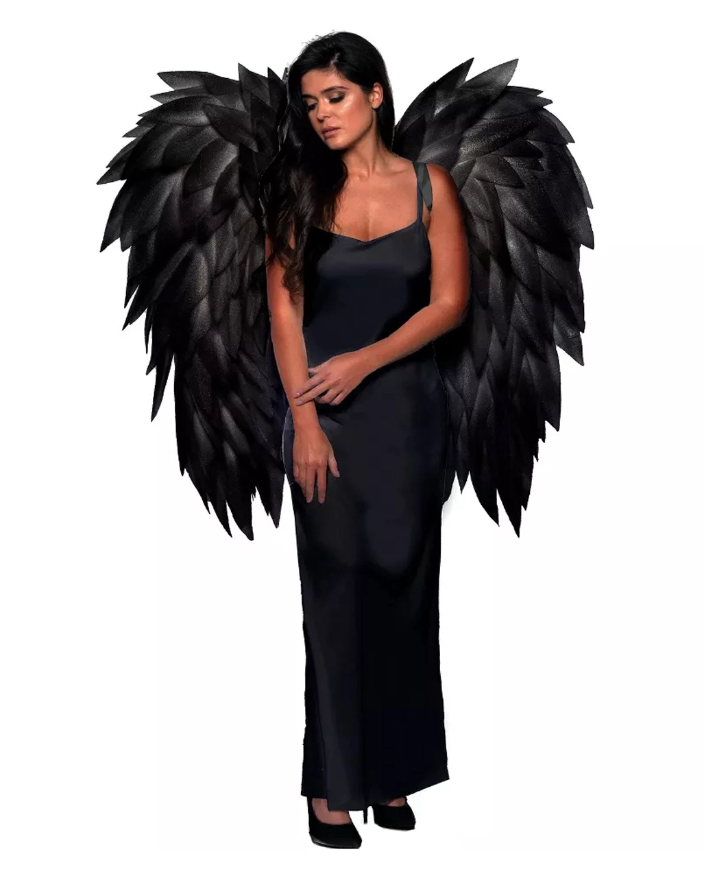 Unsere Engelsflügel in Schwarz sind aus EVA Kunststoff gefertigt und präsentieren sich als Schaumstoff-Flügel. Sie sind ca. 90 cm lang und passen sehr gut zu außergewöhnlichen Verkleidungen. Dank ihres außerordentlich leichten Gewichts verleihen sie dir ein komfortables Tragegefühl. Die Flügel sind federlos, wodurch sie strapazierfähiger und langlebiger sind als herkömmliche Kostümflügel. Unsere Schwingen sind für alle Geschlechter tragbar. Sichere dir passend dazu die Schwarze Widder Cosplay Hörner