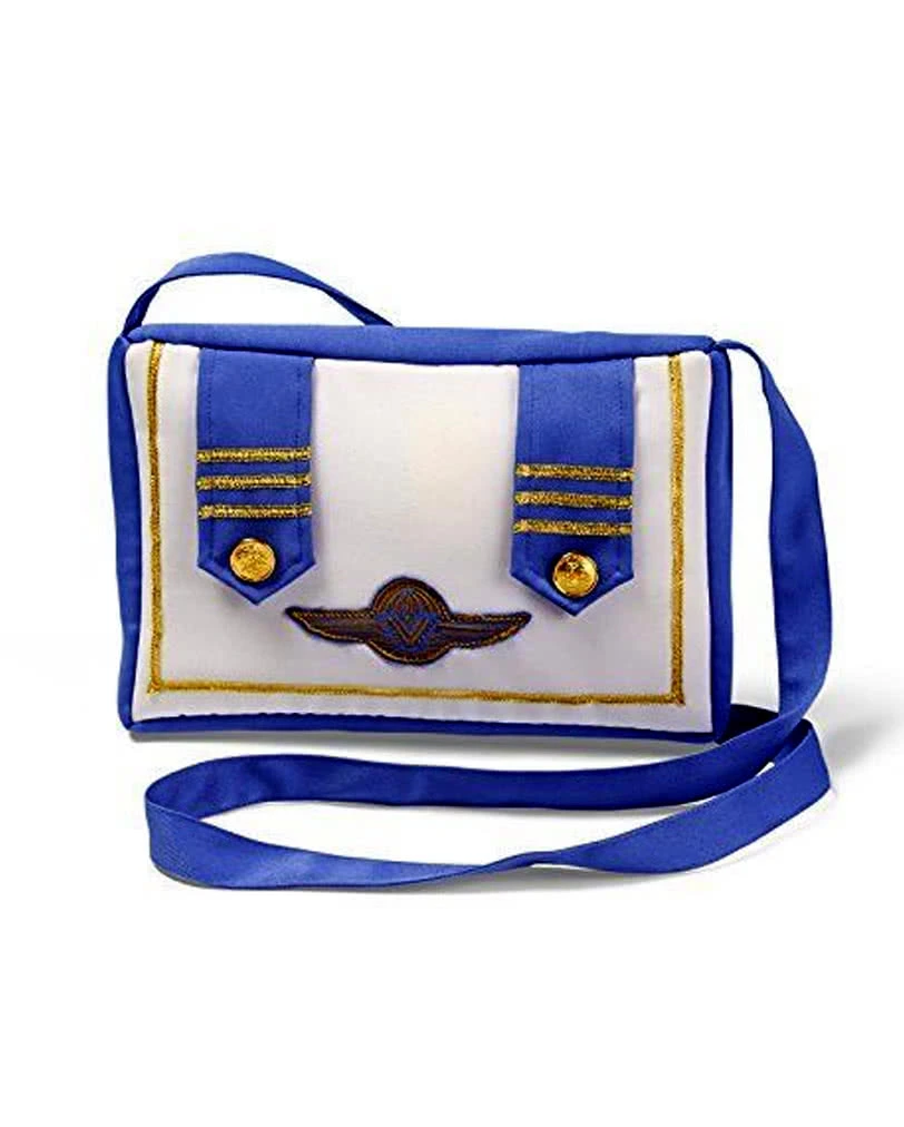 Die Flugbegleiterin Handtasche ist in einem schönen hellblau mit weiß und gold gehalten. Die wattierte Umhängetasche hat hinten einen Reißverschluss und ist vorne mit zwei blauen Schnallen mit je drei goldenen Querstreifen und Goldknöpfen verziert. In dem weißen Bereich ist außenherum ein Bordüre aus Goldfäden angebracht sowie ein blau-goldenes Abzeichen, das für eine Fluggesellschaft steht. Der Umhängegurt ist ca. 134,5 cm lang. Das Rockabilly Schiffchen hellblau rundet deinen Retro-Look perfekt ab.