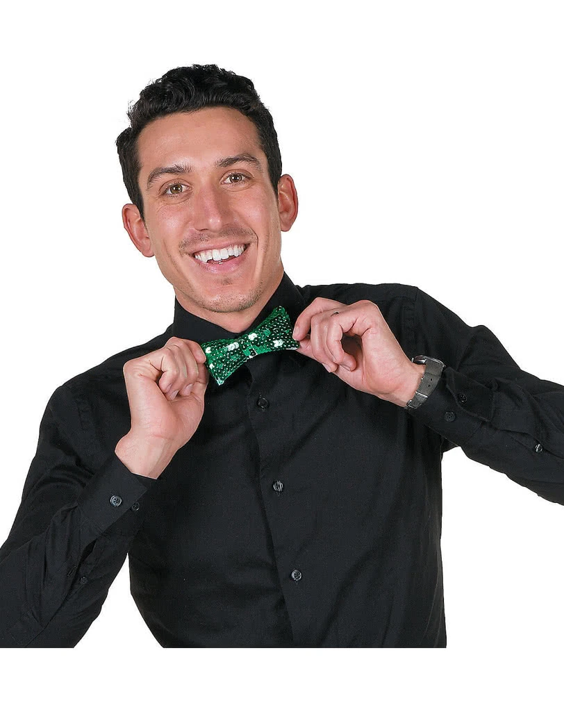 Die glänzende Grüne Pailletten Fliege wird von den namensgebenden Pailletten verziert. Mit einem elastisches Band wird die Fliege am Hals befestigt. Als fabelhafte Ergänzung für das St. Patrick’s Day Glitter Zylinder und als schmuckes Beiwerk am Grüner Ganzkörperanzug sorgt die Pailletten bewährte St. Patrick’s Fliege für ein individuelles Aussehen deiner Party-Bekleidung.