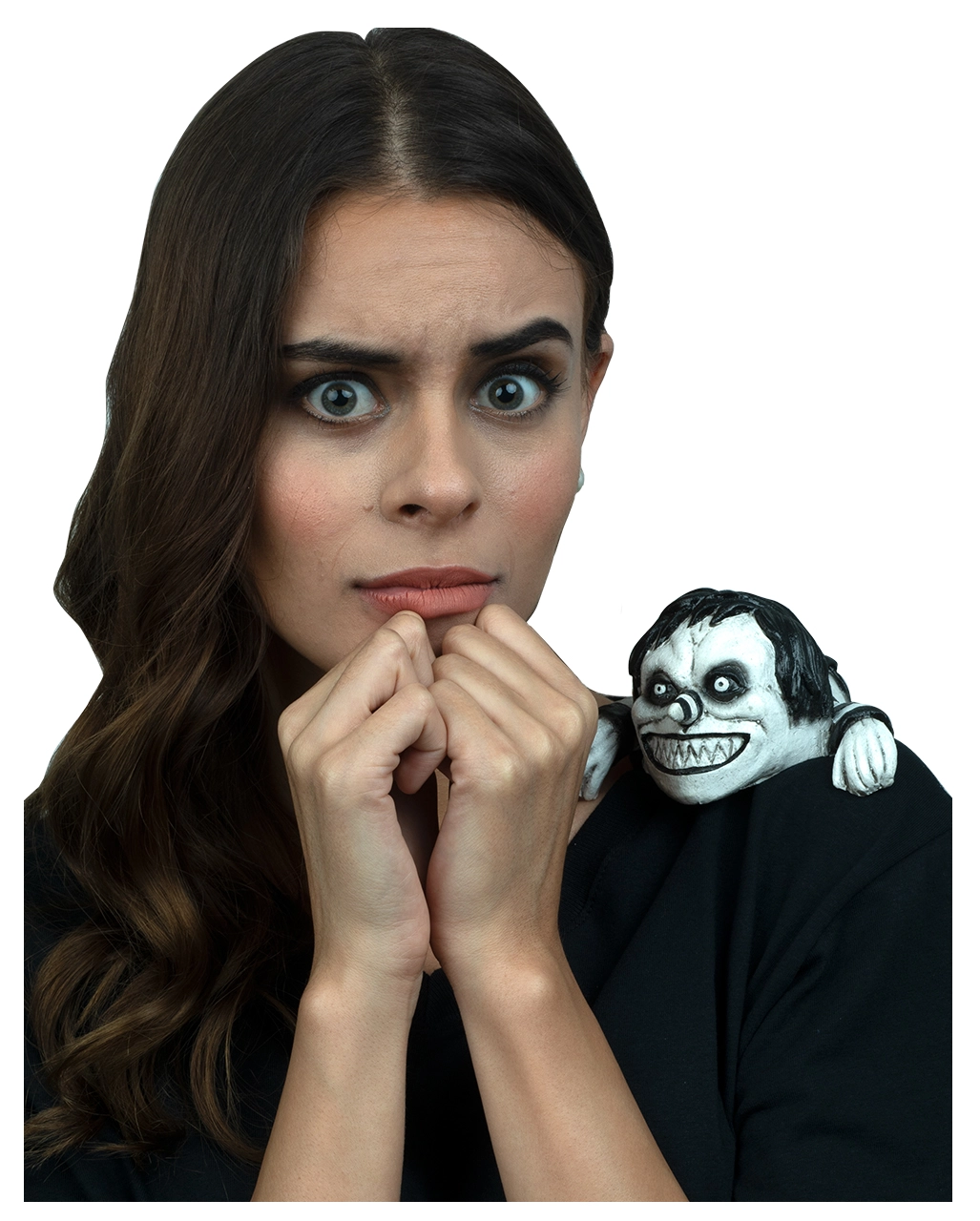 Er freut sich auch schon riesig darauf, die Leute zu erschrecken. Unser lachender Jack Buddy für die Schulter ist aus Latex und hat ein fies grinsendes Horror Clown Face. Der kleine Kerl zeigt Zähne und schaut aus irren runden Augen über deine Schulter hinweg. Passend dazu findest du bei uns eine Menge Kostüme und Zubehör wie das Weißes Tuben Make Up und die Schwarze Clown Perücke. Mit den richtigen Accessoires könnt ihr zum Beispiel im Partnerlook gehen.