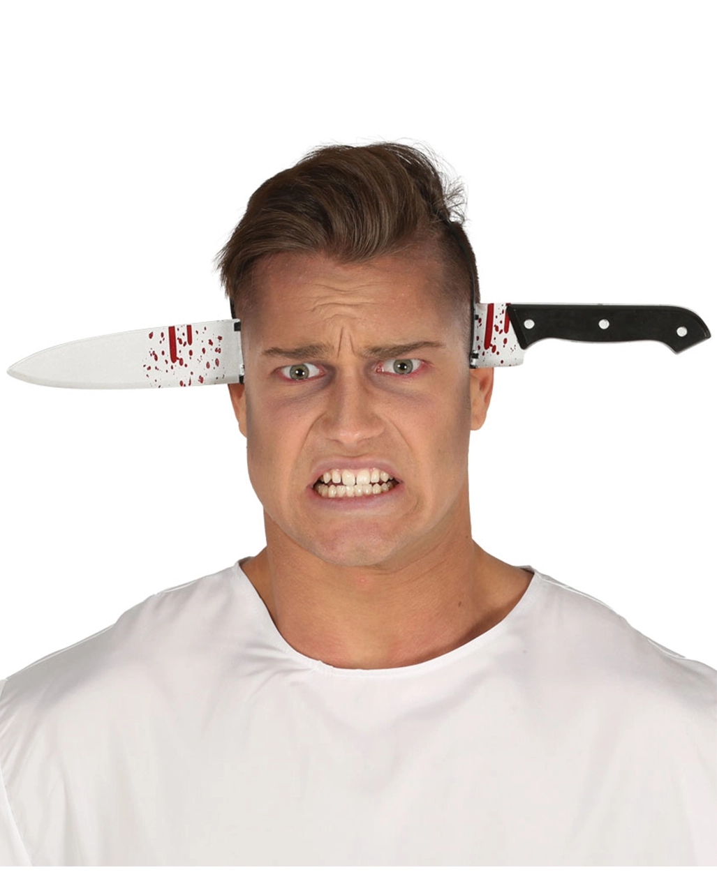 Alles für Halloween und Zombie Walk findest du auf Karneval Universe! Der Messer im Schädel Halloween Haarreif ist ein blutiges Kostümzubehör für Slasher Verkleidungen & Zombie Walk. Die große Klinge mit Griff ist an einem Haarreifen befestigt, welchen du einfach auf den Kopf setzt. Dann sieht es so aus, als würde die riesige Klinge in deinem Schädel feststecken. Aber keine Angst: Dieses Accessoire tut überhaupt nicht weh!
