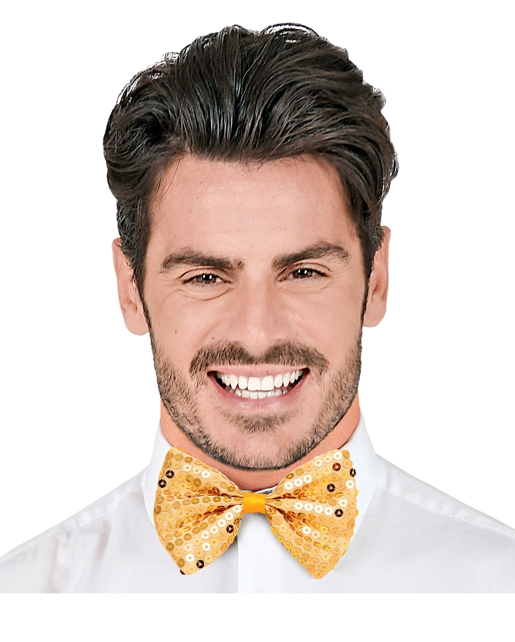 Bühne frei! Denn jetzt kommt ein echter Star. Das sieht man ja schon an der herrlich funkelnden Pailletten-Fliege, die einen wahren Show Act wie Du einer bist, sofort erkennbar macht. Das tolle Kostümzubehör wird Dich im Scheinwerferlicht erstrahlen lassen. Aber auch wenn Du nicht gerade “Cabaret” gibst, wird Dich die goldene Pailletten-Fliege zum Mittelpunkt der Silvester-Party oder der Faschingsfete machen.