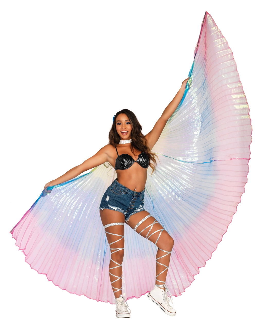 Verwandle dich in eine Göttin aus der ägyptischen Mythologie mit unseren regenbogenfarbenen Isis Flügeln! Die ca. 135cm großen Flügel in Bunt ergänzen hervorragend Kostüme im Stil des alten Ägyptens an Karneval, können aber genauso als Accessoire für Bauchtanzaufführungen und Mottopartys verwendet werden.