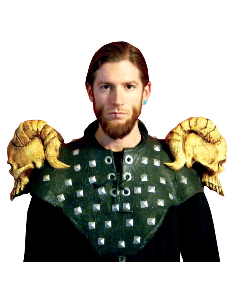 Verkleide dich jetzt mit dem Schulterpanzer mit Schädeln in ein Ritter oder grausamen Krieger. Wer gerne mal als Ork oder als übler Schurke aus der Märchen- und Sagenwelt verkleidet sein will, ist mit dem Schulterpanzer aus Latex gut gerüstet. Der fantastisch gearbeitete Schulterpanzer mit gehörnten Totenschädel ist ein Muss für wahre Kerle. So verkleidet schlägst du jeden Gegner in die Flucht, ganz gleich ob es sich dabei um Elfen, Zwerge oder gegnerische Ritter handelt.