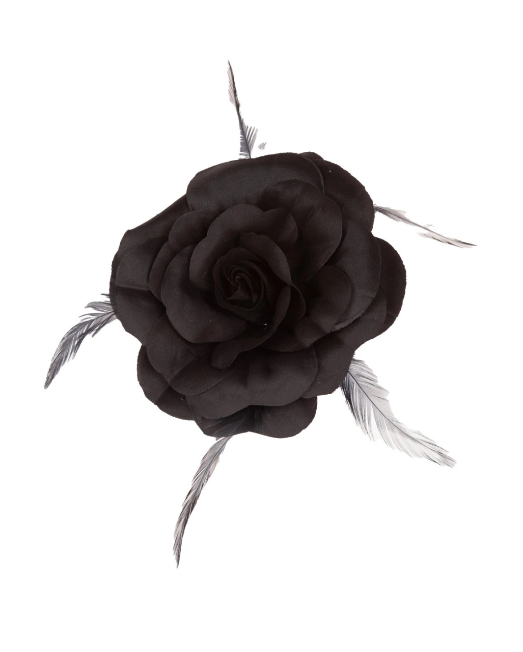 Schwarze Rosenblüte mit Haarclip & Haargummi